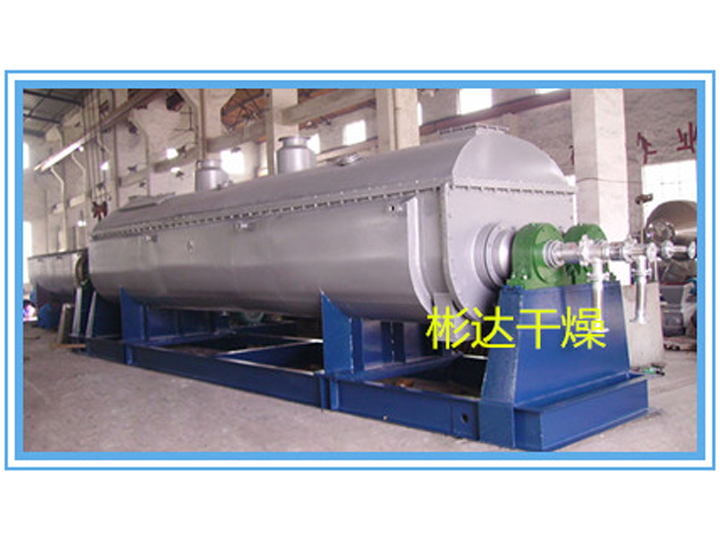 空心軸上密集排列著楔型中空漿葉,熱介質(zhì)經(jīng)空心軸流經(jīng)漿葉。單位有效容積內(nèi)傳熱面積很大,熱介質(zhì)溫度從-40℃到320℃,可以是水蒸汽,也可以是液體型:如熱水、導(dǎo)熱油等。間接傳導(dǎo)加熱,沒有攜帶空氣帶走熱量,熱量均用來加熱物料。熱量損失僅為通過器體保溫層向環(huán)境的散熱。楔型漿葉傳熱面具有自清潔功能。物料顆粒與楔型面的相對運(yùn)動產(chǎn)生洗刷作用,能夠洗刷掉楔型面上附著物料,使運(yùn)轉(zhuǎn)中一直保持著清潔的傳熱面。漿葉干燥機(jī)的殼體為Ω型,殼體內(nèi)一般安排二到四根空心攪拌軸。殼體有密封端蓋與上蓋,防止物料粉塵外泄而充分發(fā)揮作用。