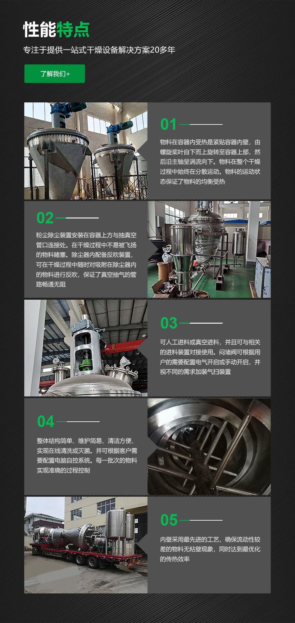單錐螺帶真空干燥機(jī)用于混合干燥機(jī)是醫(yī)藥、化工、農(nóng)藥、食品生產(chǎn)等行業(yè)粉體干燥設(shè)備。本機(jī)徹底改變了傳統(tǒng)干燥設(shè)備體積大、能耗高、工時(shí)長(zhǎng)、效率低、噪音高、易結(jié)塊、多漏點(diǎn)以及清潔維護(hù)不便等缺陷。