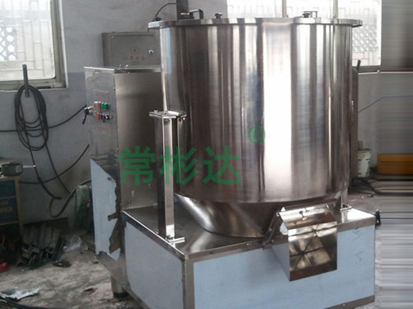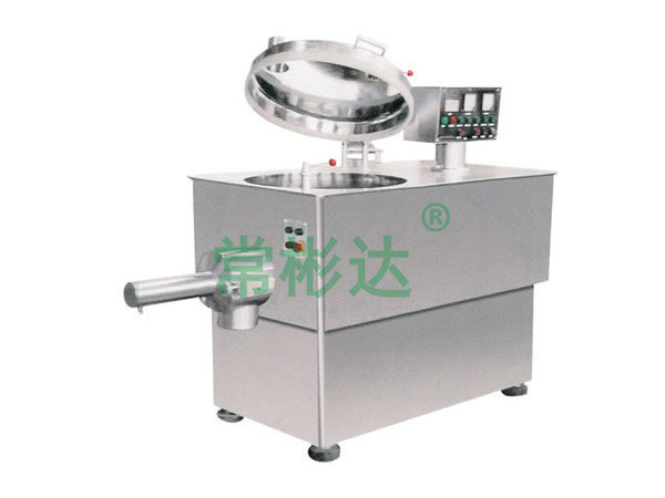 粉體物料與粘合劑在圓筒形容器中由底部混合漿充分混合成濕潤(rùn)軟材,然后由側(cè)置的高速粉碎槳切割成均勻的濕顆粒。